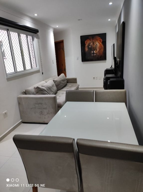 Cobertura à Venda - Jardim Ana Maria, Santo AndréDescubra a excelente oportunidade de morar em uma cobertura elegante e confortável no Jardim Ana Maria, em Santo André. Este imóvel é perfeito para quem busca um espaço bem planejado, com áreas de convivência diferenciadas e ótimos acabamentos.Características da Cobertura:Área Externa:Fechada com janelas de vidro, proporcionando luminosidade e proteção.Churrasqueira: Ideal para momentos de lazer e confraternização.Pia e Lavabo: Praticidade e funcionalidade para seus eventos.Apartamento:Sala: Ampla e aconchegante, perfeita para reunir a família e amigos.Cozinha Planejada: Com móveis sob medida, otimizando o espaço e facilitando o dia a dia.2 Dormitórios:1 Suíte Conforto e organização garantidos.Banheiro Social: Atendendo às necessidades dos moradores e visitantes.1 Vaga de Garagem: Segurança e comodidade para seu veículo.Diferenciais:Estuda permuta por casa com quintal, oferecendo flexibilidade na negociação.Localização Privilegiada:Situada no Jardim Ana Maria, uma região tranquila e bem localizada em Santo André, próximo a comércios, serviços e opções de transporte, proporcionando praticidade e qualidade de vida.Santos & Mello IMÓVEISEFICIÊNCIA EM LOCAÇÃO E VENDA IMOBILIÁRIA CRECI: 17889-JRua Iuguslávia 33 Pq. das Nações Santo André/SP - (11) 4479-2121 - (11) 4401-2485